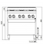 Fourneau Gaz 6 feux 3x6kW + 3x3,5kW sur placard - BERTO'S PLUS 600 ECO POWER G6F6MPW - Code 21603600