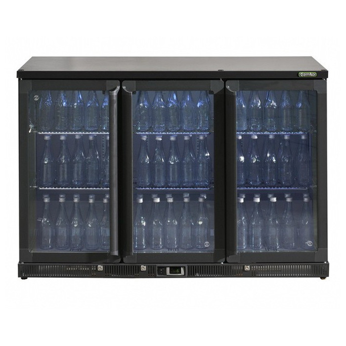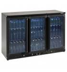 Arrière bar réfrigéré 3 portes battantes vitrées en skin-plate anthracite - Dim ext L1350 x P514 x H900/910 mm - Capacité 315 L - 333 bouteilles de 33 cl - Maxiglass Noverta MG3/315G Gamko.
