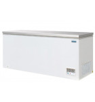 Congélateur coffre, couvercle en acier inox pouvant servir de plan de travail. Coffre extérieur en acier blanc. Affichage de la température d'exercice de -17°C -24°C. Dimensions extérieures : 1995x688xH845 mm.