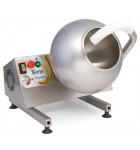 La turbine d'enrobage chocolat Twirlo 7 Litres à tambour, machine à pralines, turbine à dragées. L'enrobeuse chocolat a été conçue et construite pour recouvrir de chocolat une grande variété de produits : des fruits secs comme les amandes ou noisettes, mais aussi l’enrobage des pignons de pin, pistaches, grains de café, fruits confits et fruits secs. Dragédière entièrement construite en acier inoxydable AISI 304, c’est la machine de dragéification à enrober idéale, essentielle aux petits laboratoires de pâtisseries et aux chocolateries.