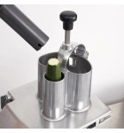 Goulotte cylindrique, avec le Poussoir Exactitube (49212) double calibre inclus, vous pouvez : - utiliser la goulotte cylindrique de diamètre Ø 58 mm prévue pour la coupe uniforme des légumes longs ou fragiles, exemples : courgette, concombre, champignons, avec une précision de coupe remarquable. - utiliser le tube réducteur de diamètre Ø 39 mm pour une coupe précise d'ingrédients de petits calibres : fraises, raisins, tomates-cerises, petits champignons, piments, radis, cornichons pickles, oignons nouveaux, bananes, saucisses sèches, asperges, herbes