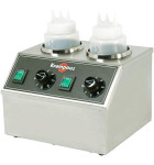 Le chauffe chocolat BECIC2AO est vendu par StockResto en dotation avec 2 bouteilles d'1 litre (réf : ABM2) en plastique souple alimentaire à presser, munies de 2 bouchons et de 2 becs verseurs à triple becs