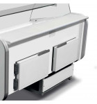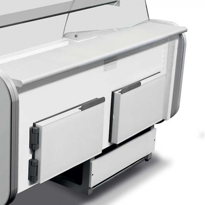 La vitrine réfrigérée dispose en dessous de la surface d’exposition de 2 réserves réfrigérées de stockage, facilement accessible par les 2 portes arrières pivotantes.