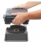 L'Easy Clean 12 Robot Coupe, vous permet de nettoyez votre grille macédoine 12 mm, sans effort, en toute sécurité soigneusement, tout en évitant les pertes. Il vous suffit de poser votre grille macédoine Expert 12x12 sur le socle support Easyclean, puis d'y insérer le bloc poinçons en le pressant à 4 reprises, tout en le faisant pivoter d'un quart de tour avant chaque répétition.