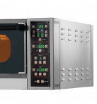 La chambre de cuisson est de grandes dimensions et est réalisée en acier Inox et de pierres réfractaires. Le four dispose d’un éclairage intérieur qui peut être contrôlé à l’aide d’un bouton placé sur le panneau de contrôle. Le four dispose d’un clapet pour la fermeture totale ou partielle du soupirail des vapeurs.
