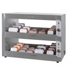 Bin Passe-Plat ou Pass Burger à lampes chauffantes, longueur 1,2 m. Construction en acier inoxydable. 2 interrupteurs On/Off pour lampes chauffantes. 2 étagères chauffantes indépendantes. Thermostat réglable jusqu'à 70°C. Grilles amovibles. 2 bacs/tiroirs récupérateurs de déchets. Dimensions extérieures : L 1200 x P 600 x H 900 mm. Dimensions utiles étagères : 2 x L 1004 x P 545 x H 290 mm. Puissance : 2 000 W. Alimentation mono 230 V.