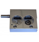 si votre façonneuse pizza est équipée d'origine d'un module support plastique blanc au lieu du module bloc métal vendu sur cette page : votre module plastique peut être de dimensions légèrement supérieure au bloc métal, cependant tous les entraxes de fixations et d'alignements du bloc métal vendu ici, sont usinés pour un positionnement correct.