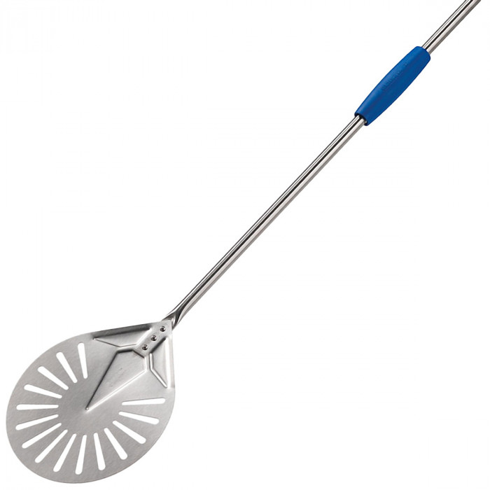 GI.METAL MADE IN ITALY Palettino per pizza testa forata rotonda Ø 20 cm in acciaio inox manico 1,20 mt linea Azzurra