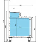 Longueur 2260 x Profondeur 800 x Hauteur 850/1010 mm. Compartiment bacs ingrédients prévu pour 12 bacs GN1/3-150. Construction en acier inox AISI 304 intérieur et extérieur - Garantie 2 ans pièces. MPL2300 INFRICO.
