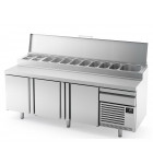 Meuble pizza chef 3 portes L 2300 x P 800 mm - Compartiment réfrigéré pour 11 bacs GN1/3 - Inox AISI 304 - - MESA PIZZA LUCENA 2300 : MPL2300 INFRICO.