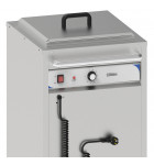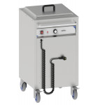 Chariot chauffe-assiettes à niveau constant. Dim extérieures L550 x P620 x H950 mm. Thermostat réglable de 30°C à 110°C. Construction acier inoxydable. Bouton ON/OFF. Pour assiettes de diamètres Ø 190 à 350 mm. Hauteur d'empilement d'environ 490 mm, soit environ 45 assiettes. Distributeur d'assiettes mobile sur 4 roues dont 2 avec freins. Couvercle inclus. Puissance : 570 W / 230 V. Poids : 40 Kg.