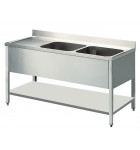 Plonge inox professionnelle 2m 2 bacs à droite 1 égouttoir gauche.