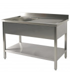 Plonge inox Longueur 1200 x Profondeur 600 mm avec sous-tablette, top renforcé de qualité professionnelle bac Inox AISI 304, structure AISI 441 :