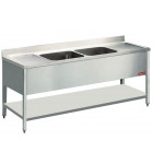 Plonge inox professionnelle 2m 2 bacs 2 égouttoirs.