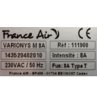Marque France Air, monophasé 230V et sortie fixe 230V pour circuit et contrôle boitier étanche IP54, avec fusible : 5x20mm 8 A Type T.