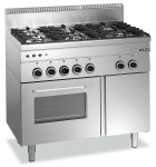 Piano 6 feux vifs profondeur 600 sur four gaz, équipés de thermostat de sécurité, thermocouple, brûleur pilote pour l'allumage automatique.
