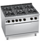 Fourneau Gaz 6 feux vifs de 3,5 à 12kW sur grand four gaz GN 2/1 de 12 kW - MAXIMA 900 HIGH POWER G9F6+T - 20706200 BERTO'S
