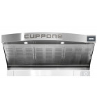 Dimensions extérieures en mm L 1546 x P 1215 x H 410 mm. Construction en acier inox. Extracteur avec une capacité de 700 m3/h. Carte électronique avec variateur pour le réglage de la vitesse d'aspiration. Éclairage frontal sous le bandeau. Filtres extractibles et lavables.