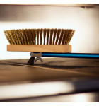 Brosse professionnelle ACSP120 de haute performance pour nettoyage four à pizza, extrêmement légère 0,67 kg et d'une grande robustesse. Les crins de laiton permettent de nettoyer rapidement et efficacement la pierre réfractaire des résidus alimentaires, de farine ou de cendre Le grattoir postérieur en acier inoxydable permet de supprimer les résidus collés sur la sole du four Le manche en aluminium anodisé à profil tubulaire ovale augmente la stabilité et permet une préhension parfaite La tête de brosse orientable permet une utilisation en latérale, vous permettant d'atteindre toutes les zones de la pierre réfractaire du four