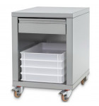 Support presse Cuppone avec 1 tiroir. Compatible pour tous les modèles de presse pizza Pizzaform Cuppone (presse : PZF30, PZF35, PZF40, PZF45, PZF50). Dimensions : 555 x 710 x H800 mm.