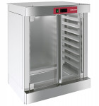 Étuve chauffante statique. Structures avec glissières incluses pour plaques : 8 niveaux. Double rangé pour 600x400 EN ou 530x325 GN1/1. Dimensions extérieures : 875 x 710 x H934 mm. Humidificateur manuel. Température : +25°C à +60°C. 2 portes en verre.