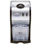 Modes d'utilisations de la machine à glace pilée Santos 53 : 2 tailles de glace pilée, fine ou grosse : - fin par pression sur le bouton - - gros par pression sur le bouton + 2 modes de fonctionnement : - automatique, appui court sur le bouton : broie automatiquement la totalité des glaçons placés dans le réservoir supérieur - manuel, appui long sur le bouton : broie la glace tant que l'on appuie sur le bouton