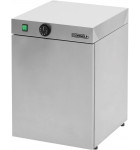 Chauffe-assiettes en acier inoxydable. Double paroi. 1 étagère additionnelle. Capacité de 30 assiettes Ø 350 mm. Thermostat réglable de 30° à 90°C. Thermostat de sécurité en cas de surchauffe. Possibilité de changer le sens d'ouverture de la porte. Puissance : 400 W / 230 V. Dimensions : L 400 x P 460 x H 570 mm. Poids : 19 Kg.