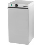 Chauffe-assiettes en acier inoxydable. Double paroi. 1 étagère additionnelle. Capacité de 60 assiettes Ø 350 mm. Thermostat réglable de 30° à 90°C. Thermostat de sécurité en cas de surchauffe. Possibilité de changer le sens d'ouverture de la porte. Puissance : 750 W / 230 V. Dimensions : L 400 x P 460 x H 870 mm. Poids : 25,5 Kg.