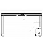 Congélateur coffre blanc avec couvercle inox. Dimensions extérieures : 1492x743xH840 mm. Capacité 469 Litres. Température d'exercice de -18°C -24°C. Couvercle avec serrure verrouillable. Accessoires fournis avec le congélateur horizontal : 2 paniers.