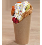 Gaufre Bubble ou Egg Waffle ou Bubble crêpe : Elle tient son nom de la forme rondes des 37 alvéoles qui la composent. Le couple de fers (en fonte brute certifiée contact alimentaire) du gaufrier professionnel Bubble Krampouz est spécialement étudiés pour obtenir des alvéoles fines. Cette conception permet de réduire la quantité de pâte nécessaire à la préparation d’une gaufre Bubble Le gaufrier WECAUA permet de réaliser une gaufre Bubble par cuisson Après cuisson, la gaufre se roule pour prendre la forme d’un cornet à garnir avec de la crème glacée, des fruits, de la crème fouettée, chocolat ou toutes autres décos comestibles et alléchantes.