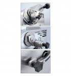 Super Dérouleuse disposant d’un couple de rouleaux pleins en acier inox poli miroir Écartement des rouleaux de 0 à 15 mm d'ouverture maximum Cette ouverture maxi permet d'introduire une pâte d’épaisseur allant jusqu'à 40 mm Double entrée pour l'insertion de la pâte (épaisse / fine) Système rapide d’accroche des accessoires coupe-pâtes