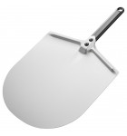 Petite pelle à pizza CLASS 33/25 à usage domestique extrêmement légère 0,50 kg et d'une grande robustesse. Pelle servant à enfourner et défourner les pizzas dans des petits fours ménager Tête pleine en aluminium anodisé limitant la transmission de la chaleur du four sur la pelle, manche réalisés en aluminium. L'assemblage de la tête au manche est constituée par la superposition et le chevauchement des deux éléments, qui sont fixés l'un sur l'autre par deux gros rivets* alignés, garantissant une haute sécurité et une extrême stabilité, limitant les vibrations dans le manche, ce qui augmente son confort d'utilisation. *Gi.Metal utilise les rivets spéciaux lesquels sont utilisés en aéronautique pour assembler les carlingues d'avions