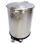 Poubelle inox 100L couvercle à pédale sur roulettes