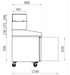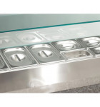 Livré avec une vitrine à ingrédients (froid statique) capacité prévue pour 9 bacs GN1/3-150mm, ou 18 bacs GN1/6 (bacs GN non inclus)