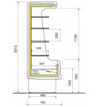 Vitrine murale conçue pour la vente en libre service de : viandes, produits laitiers, fromages, charcuterie, fruits et légumes, boissons...